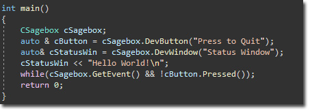 Since Sagebox pure C/C++ and is not a scripting language or a